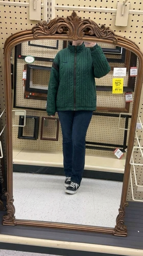 This jacket is so cute!! I’m 5’5 and got a medium for a baggy fit. The green color is super unique and looks amazing in photos. Totally TikTok-made-me-buy-it.
